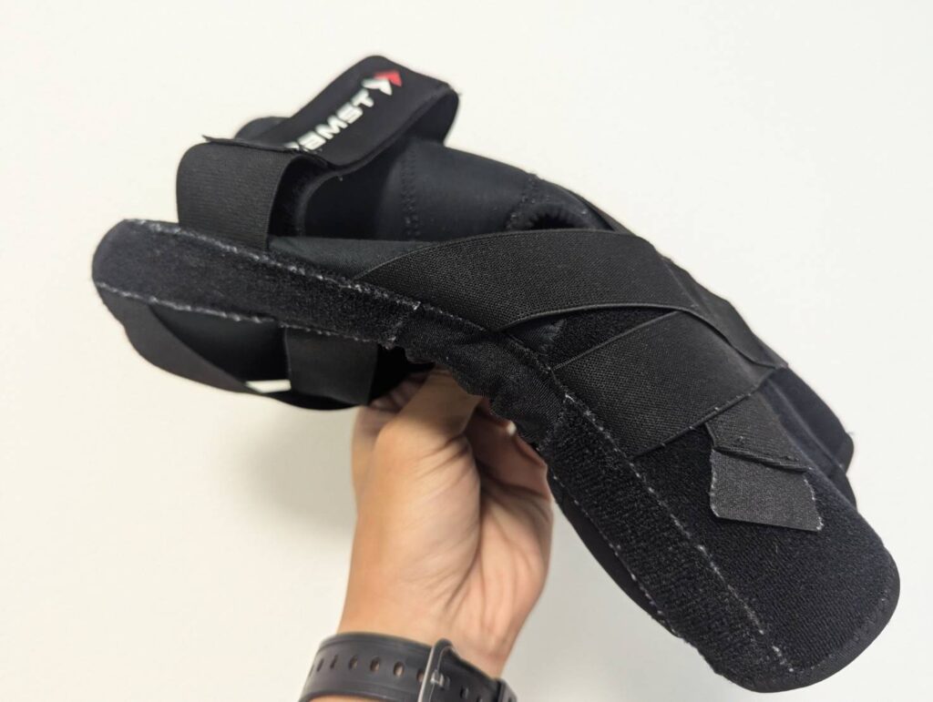 ZKプロテクトはスポーツガチ勢向けなので、日常生活での用途には向かない。かなりキツめに作られているため、服の上から装着するのはほぼ無理だと思ったほうがいい。ただ、スパッツ、レギンスなど薄い素材なら上から装着できるし、短パンなら問題ない。